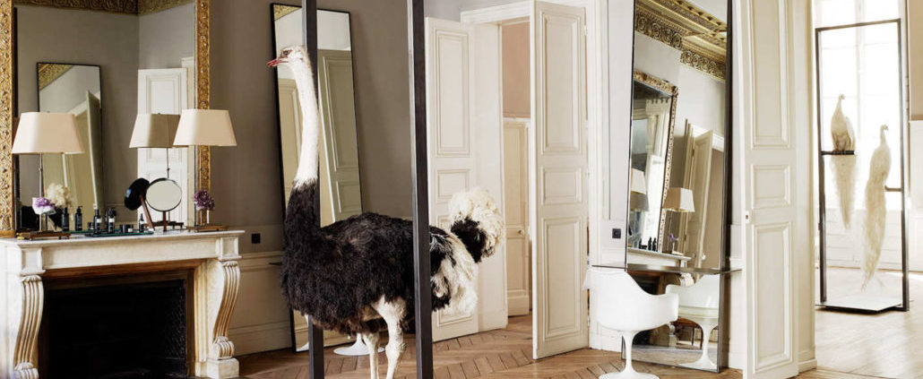 The favorite hairdresser of fashion designers and magazines officiates in an eighteenth apartment with a chic, intimate and cozy atmosphere, surrounded by objects he loves, antiques, taxidermy, pretty furniture.