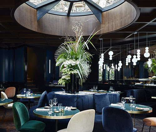 The restaurant is bathed in light thanks to its huge canopy. Young two Michelin starred Chef Arnaud Faye is in charge.