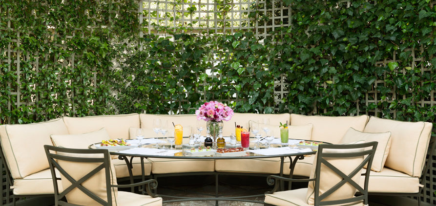 The Ritz Bar takes up its summer quarters in the Grand Jardin, in the shade of its lime tree alley. People come here from noon to nightfall, for a bucolic lunch, a date for a chic aperitif or a romantic dinner or dinner with friends. Fresh and original salads, ceviches, foie gras, tartars …. and at snack time the delicacies of Pastry Chef François Perret. And above all, nice surprise, on weekends, we meet there for a barbecue and suddenly, we take the road to vacation, its large tables and its lunches on the grass.