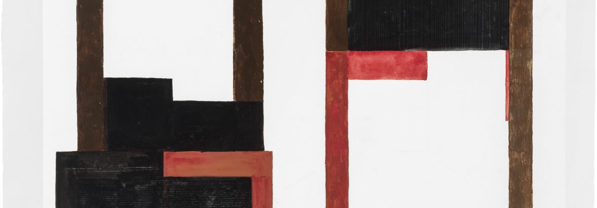 Les gouaches d’Anna Mark sont marquées, au fil des ans, par une double évolution : dans les formes (d’une forme centrée au dialogue de deux ou plusieurs formes qui s’articulent autour d’un vide) et dans les couleurs qui ont évolué du noir aux couleurs de terre, puis , à partir de 2012, aux rouges lumineux (gouaches nommées d’abord Rouges de Pompéi). Dans ces dernières œuvres, la géométrie architecturale dévoile une fantaisie de nuances qui s’emboitent, s’entrechoquent, s’allient, se fondent. Les vibrations lumineuses participent à cette alchimie mystérieuse pour nous donner à voir une œuvre qui irradie, illumine l’espace jusqu’à nous.