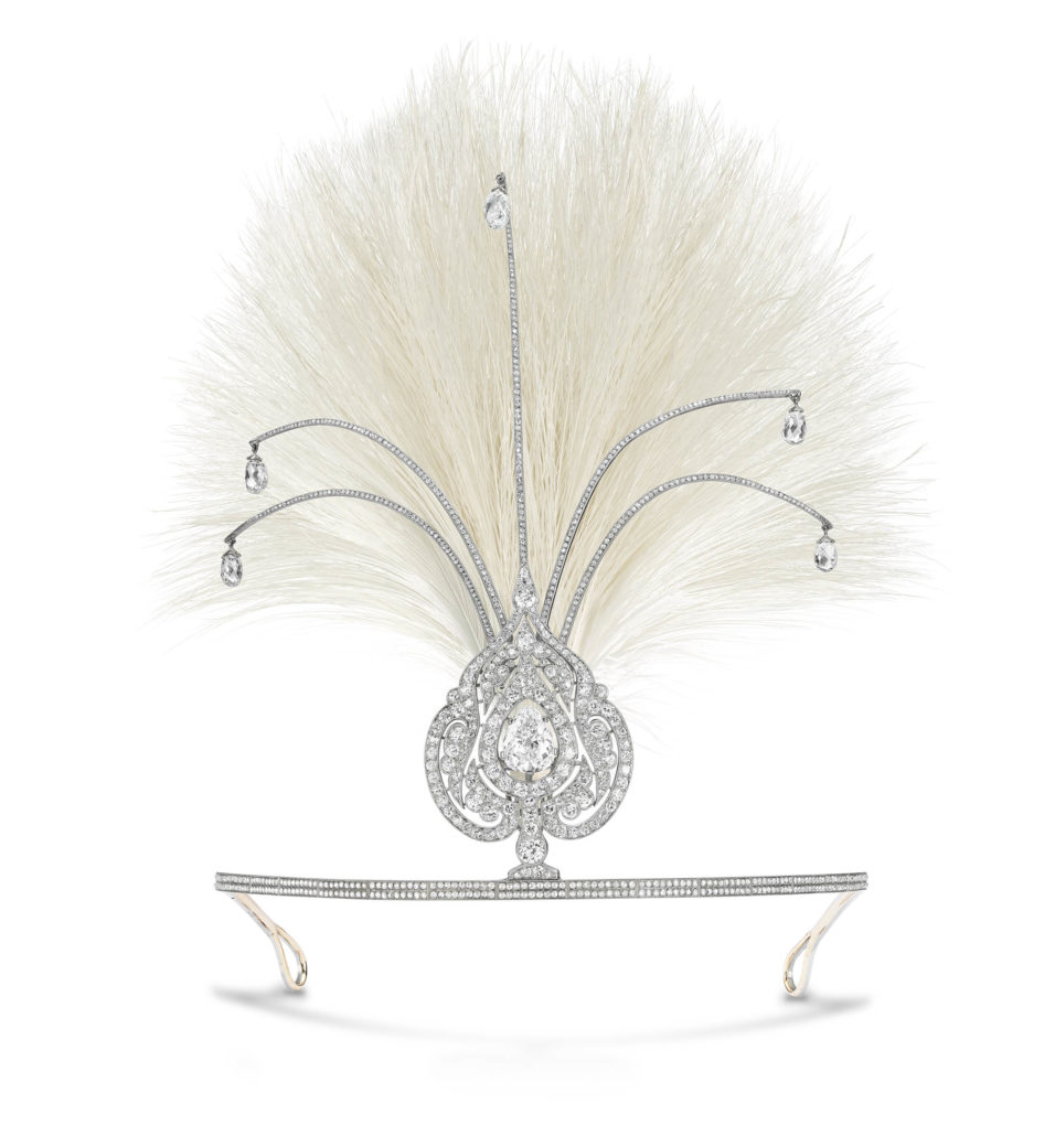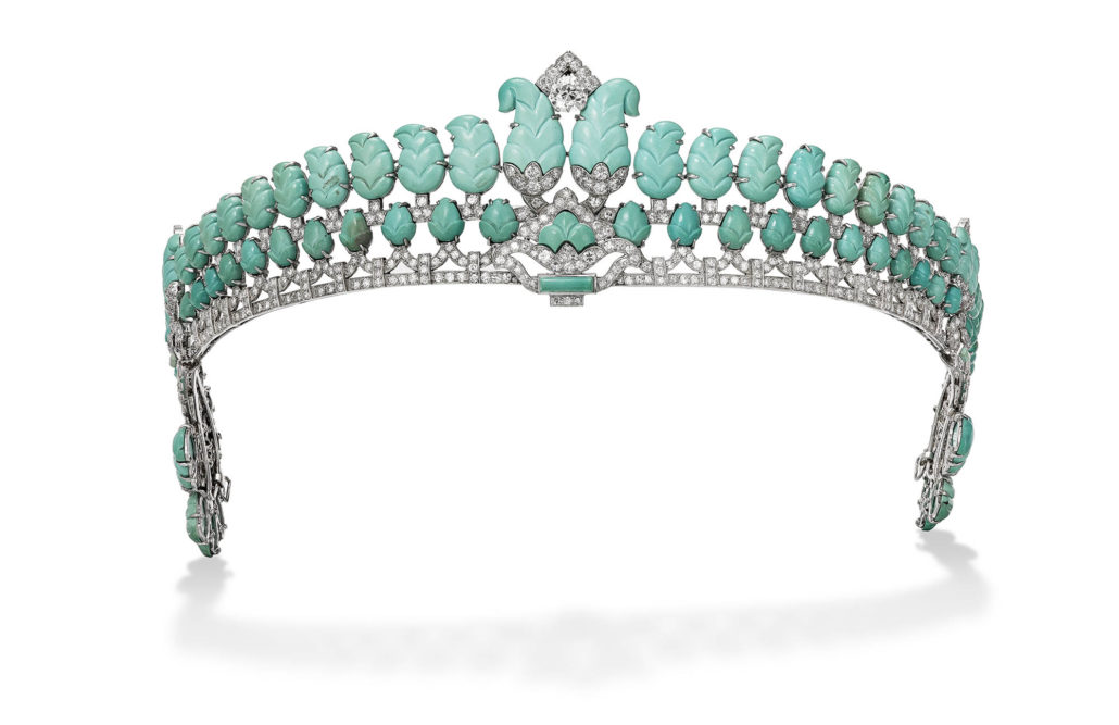 De la collection personnelle de Louis Cartier, reconstituée grâce aux archives de la Maison, aux voyages que Jacques Cartier entreprend notamment en Inde, en 1911, qui lui permettent de développer la clientèle des maharadjahs et de collecter des bijoux anciens et contemporains, pour les revendre en l’état, s’en inspirer ou les recomposer au sein de créations nouvelles. Ces différentes sources d’inspiration et les bijoux orientaux qui enrichissent les stocks de la Maison contribuent au renouvellement des formes mais aussi des techniques de fabrication. Les aigrettes, les pompons, les bazubands (bracelet allongé fixé sur le haut du bras) sont déclinés à l’envi et adaptés dans leurs formes, leurs couleurs et leurs matières au goût du jour. La flexibilité des bijoux indiens donne naissance à des innovations techniques, de nouvelles montures et assemblages. L’intégration de parties de bijoux, de fragments d’objets islamiques, désignés comme « apprêts », et l’utilisation de textiles orientaux pour créer des sacs et accessoires constituent également l’une des marques de création de la Maison en ce début de XXe siècle. Célèbre pour sa production de bijoux de style guirlande, la Maison Cartier développe, dès 1904, des pièces dont les lignes s’inspirent des compositions géométriques issues des arts de l’Islam découvertes au travers des livres d’ornements et d’architecture. Décors de briques émaillées originaires d’Asie centrale, merlons à degrés… constituent les bases d’un répertoire précurseur qualifié plus tard d’« art déco » – en référence à l’Exposition internationale des arts décoratifs et industriels modernes de Paris en 1925 – et qui très tôt a fait entrer la Maison dans la modernité.