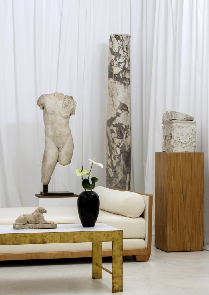 Suivant les inspirations d’images d’archives d’intérieurs 1920/1930 et de décorateurs comme Marc du Plantier ou Jean-Michel Frank, ils ont imaginé ensemble une ambiance intemporelle à l’image de celle que les collectionneurs de cette époque affectionnaient, mariant leurs sculptures au mobilier raffiné et créant ainsi une esthétique intérieure tout à fait singulière qui a marqué les arts décoratifs du vingtième siècle.